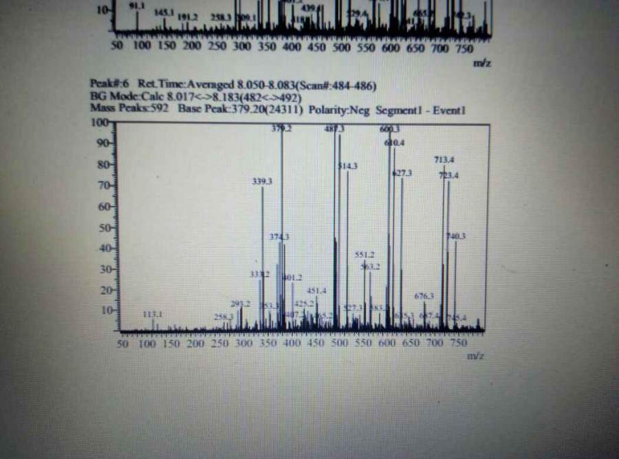 13C NMR (101 MHz, DMSO) δ 135.94 (s), 74.22 (s), 73.72 (s), 46.91,44.60 (s), 43.48 (s), 40.54 (d, J = 19.2 Hz), 40.45 (s), 40.24 (t, J = 18.5 Hz), 40.01 (s), 39.73 (d, J = 14.8 Hz), 39.51 (d, J = 17.3 Hz), 39.39 (s), (溶剂峰)38.77,,38.57, 37.85 (s), 36.34 (s), 34.08 (s), 33.62 (s), 31.63,31.52, 29.59 (s), 26.28 (s), 17.63 (s), 16.47 (s), 13.43 (s). 1 . 16-Methyl-17-hydroxy-5α-androstan-3-one 13a C20H32O2 相似度:65%(不像) Steroids 2001 66 833-843 Configurational analysis and relative binding affinities of 16-methyl-5α-androstane derivatives 10.1016/S0039-128X(01)00113-1号 Pál Tapolcsányi, János Wölfling, István Tóth, Mihály Szécsi, Péter Forgó, Gyula Schneider Structure 13C NMR Structure & 13C NMR 期刊地址 2 . dihydroflexibilolide (Dihydroflexibilolide不像) C20H34O5 相似度:65% Natural Product Research 1996 9 127-135 Flexibilolide and Dihydroflexibilolide, The First Trihydroxy-Cembranolide Lactones from the Soft Coral Sinularia Flexibilis of the Indian Ocean A. S. R. Anjaneyulu; K. S. Sagar Structure 13C NMR Structure & 13C NMR 期刊地址 3 . 5α-hydroxy-9α,10β,13α-tdacetoxytaxa-4(20),11-diene C26H38O7 相似度:65%(不像) Phytochemistry 1996 43 839-842 Taxanes from Taxus mairei Shung-Jim Yang, Jim-Min Fang, Yu-Shia Cheng Structure 13C NMR Structure & 13C NMR 期刊地址 4 . ent-1β-hydroxyatis-13-ene C20H32O 相似度:65% Journal of Natural Products 1989 Vol 52 669 Acid-Catalyzed Rearrangement of ent-Atis-13,16-dienes E. Cabrera, A. Garcia-Granados, M. Hervas Structure 13C NMR Structure & 13C NMR 期刊地址 5 . 7β-hydroxysandracopimaric acid 相似度:65% Phytochemistry 1990 29 2346-2348 Diterpenoids from Salvia wiedemannii G. Topcu,A. Ulubelen Structure 13C NMR Structure & 13C NMR 期刊地址 6 . 5α-hydroxy-9α,10β,13α-triacetoxytaxa-4 (20),11-diene 相似度:65% Journal of Shenyang Pharmaceutical University 2009 26 785-788 Isolation and identification of chemical constituents from Taxus cuspidta Sibe. et Zucc. LI Ya-nan, WANG Wen-ze, WU Li-jun, WANG Ji-wen, GAO Hui-yuan Structure 13C NMR Structure & 13C NMR 期刊地址 7 . compound 40 相似度:65% Natural Product Communications 2008 3 399-412 Structural Elucidation of Pimarane and IsopimaraneDiterpenoids: The 13C NMR Contribution Ana M. L. Seca, Diana C. G. A. Pinto and Artur M. S. Silva Structure 13C NMR Structure & 13C NMR 期刊地址 8 . 13-hydroxystemarane-19-carboxylic acid 相似度:65% Phytochemistry 2001 56 141-151 Biotransformation of diterpenes and diterpene derivatives by Beauveria bassiana ATCC 7159 Greg O. Buchanan, Paul B. Reese Structure 13C NMR Structure & 13C NMR 期刊地址 9 . 19-(N,N-dimethylcarbamoxy)-2β,13-dihydroxystemarane C23H39NO4 相似度:63.6% Phytochemistry 2006 67 1088-1093 Bioconversion of Stemodia maritima diterpenes and derivatives by Cunninghamella echinulata var. elegans and Phanerochaete chrysosporium Andrew S. Lamm, William F. Reynolds, Paul B. Reese Structure 13C NMR Structure & 13C NMR 期刊地址 10 . 3β,5α-dihydroxy-13α-androstan-17-one C19H30O3 相似度:63.1% Phytochemistry 1997 45 951-956 The hydroxylation of some 13α-methylsteroids by Cephalosporium aphidicola Juliette Boynton, James R. Hanson, A. Christy Hunter Structure 13C NMR Structure & 13C NMR 期刊地址 11 . 16β,17-dihydroxy-7-oxo-ent-atisan-19-al C19H26O4 相似度:63.1% Phytochemistry 2010 71 1313-1321 Biotransformation of 7α-hydroxy- and 7-oxo-ent-atis-16-ene derivatives by the fungus Gibberella fujikuroi Braulio M. Fraga, Pedro Gonzalez, Victoria Gonzalez-Vallejo, Ricardo Guillermo, Luz N. Diaz Structure 13C NMR Structure & 13C NMR 期刊地址 12 . 16α,17α-epoxy-5α-androstan-3-one C19H28O2 相似度:63.1% Journal of Chemical Research 2008 32 314-317 Microbiological hydroxylation of some epoxy steroids by the fungus Mucor plumbeus Author: Alfooty, Khalid O. Structure 13C NMR Structure & 13C NMR 期刊地址 13 . compound 12 相似度:63.1% Organic Magnetic Resonance 1984 22 734-736 Carbon-13 NMR spectra of Piper alkamides and related compounds Avijit Banerji, Manjusha Sarkar (née Chaudhuri), Tapasree Ghosal and Sudhir Chandra Pal Structure 13C NMR Structure & 13C NMR 期刊地址 14 . compound 13 相似度:63.1% Organic Magnetic Resonance 1984 22 734-736 Carbon-13 NMR spectra of Piper alkamides and related compounds Avijit Banerji, Manjusha Sarkar (née Chaudhuri), Tapasree Ghosal and Sudhir Chandra Pal Structure 13C NMR Structure & 13C NMR 期刊地址 15 . compound 12 相似度:63.1% Organic Magnetic Resonance 1984 22 736-738 Carbon-13 nuclear magnetic resonance spectra of some heterocyclic D-homoandrostanes Deanna Marcano, Jeannette De Méndez, Ana C. Ortiz and Mirna Salinas Structure 13C NMR Structure & 13C NMR 期刊地址 16 . compound 13 相似度:63.1% Organic Magnetic Resonance 1984 22 736-738 Carbon-13 nuclear magnetic resonance spectra of some heterocyclic D-homoandrostanes Deanna Marcano, Jeannette De Méndez, Ana C. Ortiz and Mirna Salinas Structure 13C NMR Structure & 13C NMR 期刊地址 17 . 3-Isopropenyl-3-methyldiamantane 相似度:63.1% The Journal of Organic Chemistry 1990 55 1792-1796 Synthetic methods and reactions. 146. Olefins from crowded carbonyl compounds with tert-butyllithium (tert-butylmagnesium chloride)/thionyl chloride. Study of carbocationic reaction intermediates and rearrangement-cleavage under stable ion conditions usin George A. Olah, An Hsiang Wu, Omar Farooq, G. K. Surya Prakash Structure 13C NMR Structure & 13C NMR 期刊地址 18 . deoxycholic acid 相似度:62.5% Chemical & Pharmaceutical Bulletin 1996 44 1289-1292 Study on the Bile Salt from Megamouth Shark. I. The Structures of a New Bile Alcohol, 7-Deoxyscymnol, and Its New Sodium Sulfates Hitoshi ISHIDA,Hidekazu MIYAMOTO,Takako KAJINO,Hidetoshi NAKAYASU,Haruo NUKAYA and Kuniro TSUJI Structure 13C NMR Structure & 13C NMR 期刊地址 5B8C3C5A1D7239B30E3176C327613DEB.jpg B8C06188437767DE34A3619F99A74E3D.jpg@lifeliuyan |
