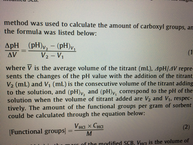 做了一个改性吸附剂,想大概确定一下里边的羧基含量,请问用什么方法呢?图中的文章有列式子,但没说具体用什么方法滴定的,有大神求教吗?急! 发自小木虫IOS客户端 |