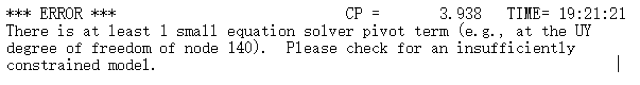杆和刚体质量的模态分析。采用了link180,solid185单元,静力分析时报错,如第三个图片所示。研究的是张力下杆和刚体质量的耦合振动问题,link和solid连接处进行了合并节点操作,约束了两个杆端部的y,z自由度,然后在x方向施加张力,质量块中心施加了x方向约束,请问问题出在哪个地方呢? @wuming524 发自小木虫IOS客户端 |