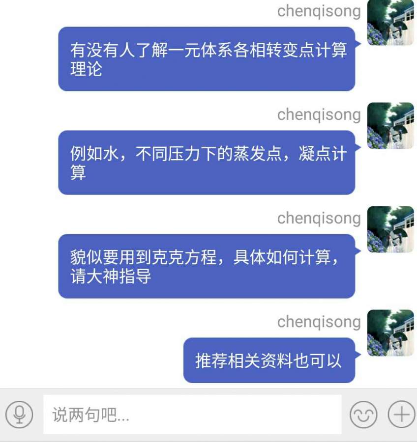 请教如何计算一元体系物相转变点,例如不同压力下水凝点与蒸发点如何计算。如有答复,感激不尽(抱拳) 发自小木虫Android客户端 |