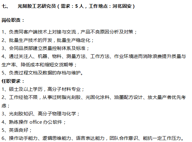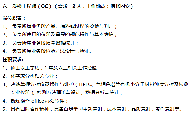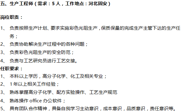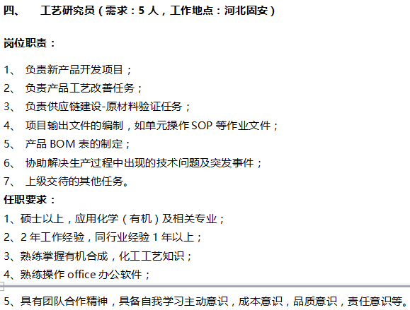 诚聘生产工程师及有机化合成员