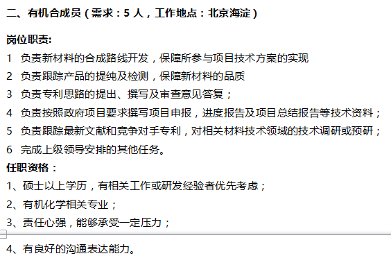 北京鼎材科技有限公司诚聘有机合成工艺工程师