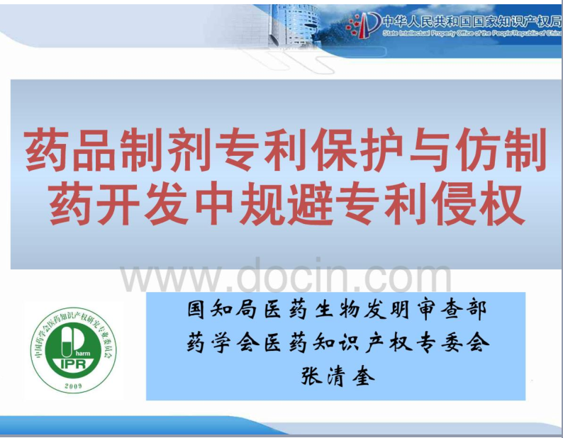 药品制剂专利保护与仿制药开发中规避专利侵权—张清奎.ppt