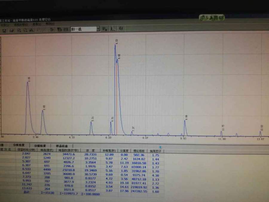 已知5.31是丙烷 6.31是二甲醚 6.53是甲醇 9.99是乙醇??进标气得知7.53正丁烯 7.93是丁烷,请大家帮忙分析下6.85可能是什么物质?(反应物是甲醇)