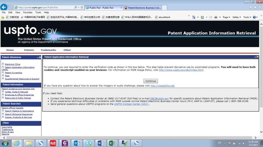 https://portal.uspto.gov/pair/PublicPair 进入这个页面后,没有出现检索界面选择框,而是下图这样,该怎么解决呢 Untitled.jpg |