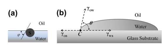 左边图指的是根据固体颗粒在油水界面所处的位置判断,右图指的是根据水滴在固体表面的铺展程度判断,请问如何两种接触角在表达上有什么区别?左边的说成是油水界面接触角,右边的说成是静态接触角,可以吗? 谢谢! CA.jpg |