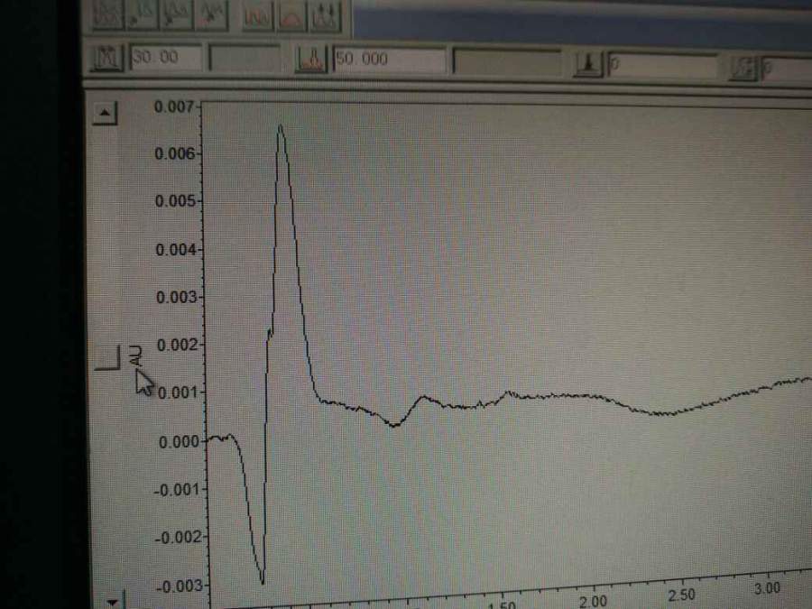 谢谢您留意本贴!本人科研菜鸟,刚接触色谱。碰到一个问题,希望各位同道能不吝赐教。我在梯度洗脱分离物质的时候,发现在初期10秒左右总会有一个一下一上的谱图波动,期间压力从2500psi降到1000.又快速回升到2500(总过程不到30秒)。之前也平衡了色谱柱,基线很稳,走单标也出现同样问题,可是单标和样品正常无污染(在别的型号柱子上检测过)。实在很困惑...希望有知道的朋友能帮帮我 @wyy080214 发自小木虫Android客户端 |