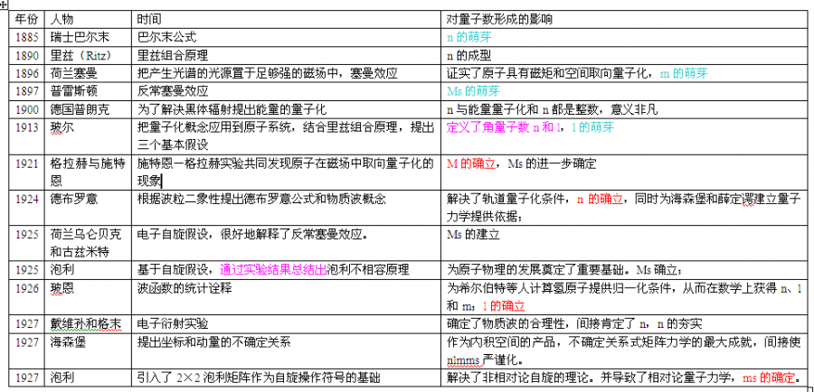 四个量子数的历史