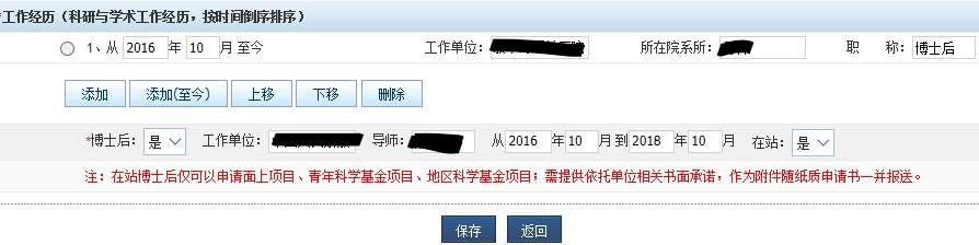 大家看看,在站博士后的研究经历这样填的话 1.jpg 生成的PDF里是这样的: 1.2016/10-至今,xxx,xxx,博士后 2.2016/10-2018/10,xxx,博士后,合作导师:xxx 这样是不是有些重复呀? |