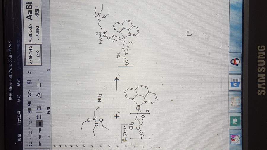 想请教一个迈克尔加成反应,如图硅烷偶联剂APS(氨丙基三乙氧基硅烷)和Eu(MAA)3phen的迈克尔加成,用醇钠做催化剂,溶剂是DMSO,50度,没反应!!!! 求助!! 20170308_165218.jpg |