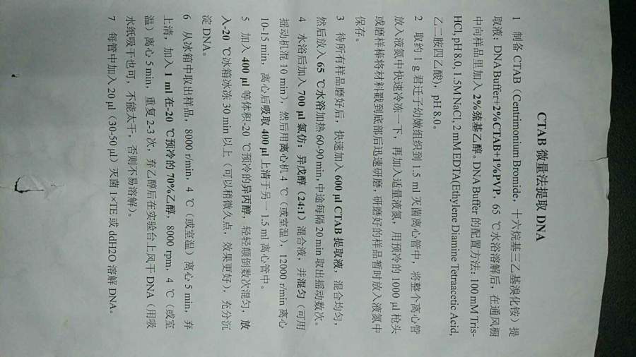 | 用的是ctab法 但是提出来的DNA是黑色的 手提法 即使多加了pvp仍然为黑色 ,第二次加入14:1后离心上层为黄色而下层为白色,不知道哪里出了问题 现在不知道是什么原因,今早溶的昨晚洗过过夜晾干的DNA 晚上琼脂糖胶结果无明显条带 秋大神指导。(自己第一次提出来的没什么问题,后两次的越来越差 考虑是不是样品加多了、pvp加多了、巯基乙醇加多了,但感觉都不是,求指导)(新人 没有金币 求指导) |