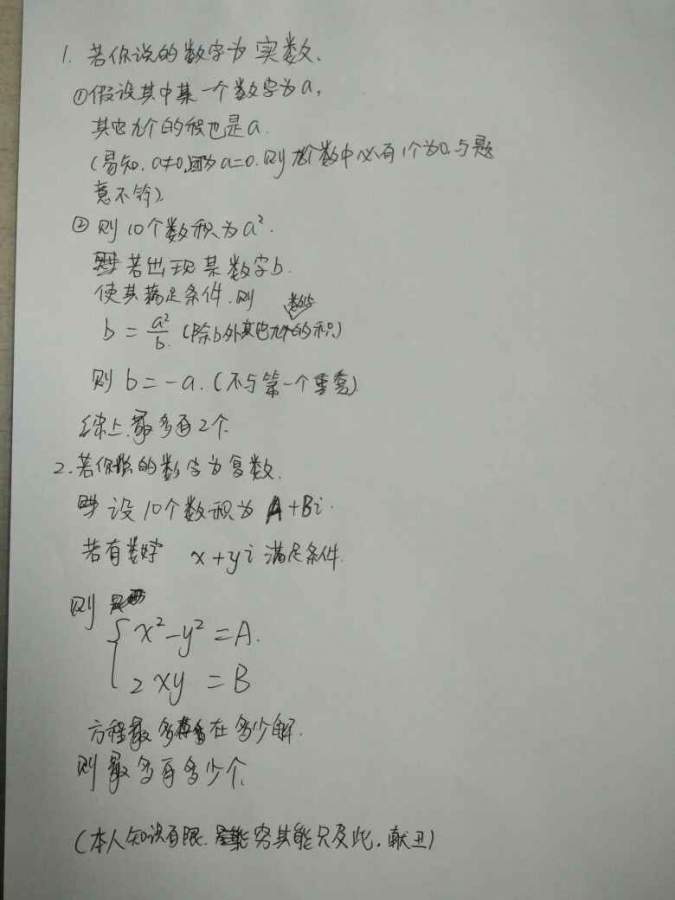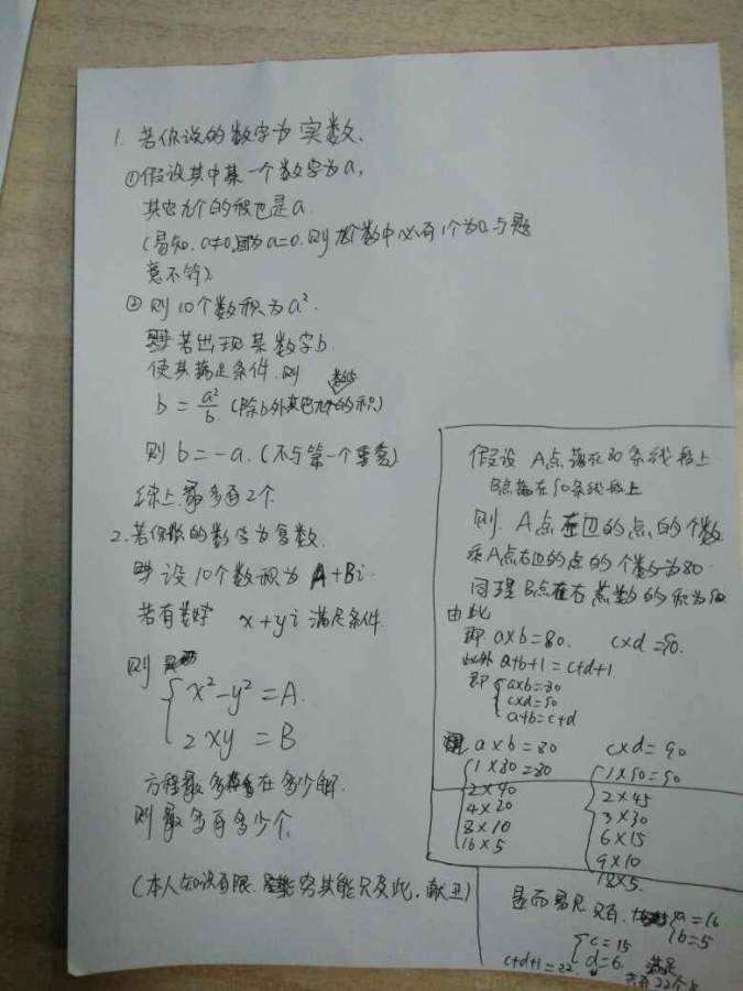 问题: 1. 10个不同的数字被写下。如果某数字为其他的9个数字的积,则在那个数字下方画线。至多能有多少数字被画线? 2. 我们在一条直线上标记若干个点,并用当中每一对点画线段(每段不包括端点)。已知:其中一个点落在80条线段上; 另外一个点落在90条线段上。请问共标记了多少个点? 请写明步骤,谢谢。 ![]() ![]() ![]() ![]() ![]() ![]() |