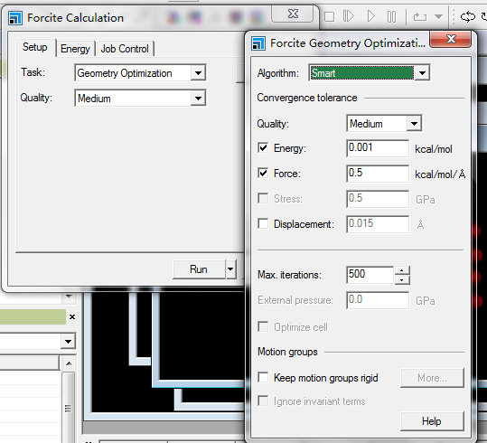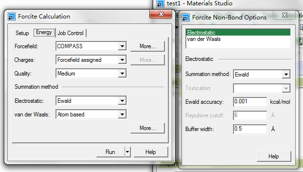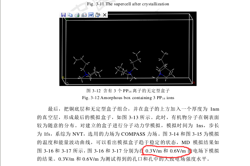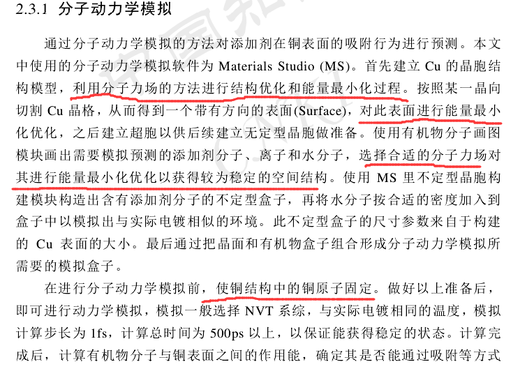 首先,用MS模拟金属与有机物吸附的论文有非常多,你说很少,只是你没找到。你找了一篇博士论文,文中的建模、参数设置的思想可以参考,但并不意味着照搬,比如加电场的问题,你是否需要。 问题1:“但是建立好铜晶体,分子,水之后,通过分子力场的方法进行结构和能量优化,这是通过哪个模块的那个Task进行的?图3是论文优化的物质。找了一些资料,分子力场的方法是不是用分子力学模块做的?图6中的参数要不要进行修改?图7中的summation method应该怎么选择?这几天找了一些资料,分子力场应该是用discover或者forcite模块做的,discover应该只能做能量优化部分,因此只能用forcite模块做,这个推测正确吗?” 回复:最常用的实现“分子力场的方法”的模块就是Discover和Forcite,在Task中,前者选择“最小化”、后者选择“几何优化”即可。 分子力场的方法肯定是用分子力学模块做的,不可能用基于量子力学的Dmol3或者CASTEP来做。 图6、图7的参数设置问题,你的体系是什么,别人都不知道,如何告诉你如何设置是合理的呢? 尤其是图6中的各个参数,是参数设置的核心,涉及力场的选用、电荷的分配、静电力和范德华力的计算方法及其截断半径设置,这些都是基础知识,也是参数设置的核心中的核心,这些参数设置是几何优化、动力学计算的基础,基础打不好,随后的计算结果无法保证。 你应该先去了解这些参数的意义,而不是上来就问怎么设置合理。 summation method这一块,静电力通用的选法使用Ewald。 此外,你觉得“discover应该只能做能量优化部分,因此只能用forcite模块做”,这是不正确的。计算能量、作几何优化、跑分子动力学,可以说discover模块和forcite模块在功能上完全一样,可以互相替代,但这仅仅是在功能上,但discover模块存在诸如计算效率低下的问题,加之forcite模块在功能上可以完全替代之,所以在MS 8.0之后已经没有discover这个模块了,只有一些年代久远的教程或者论文才用discover模块。discover模块淘汰、forcite模块成为主流是大势所趋。 最后,“能量优化”不是一个主流的说法,容易导致混淆,正确说法应该是“几何优化”或者“能量最小化”,针对的目标都是某个具体的体系、模型或者系统。 问题2“图2中说通过Dmol3模块进行量子计算,那到底是怎样计算的?以前上选修课的时候有说过先通过Dmol3的geometry进行优化,再在优化好的xsd进行能量优化,是不是这样的?” 回复:图2中所说的计算步骤,其思路其实很清晰,分子力学计算速度快、但精度低,量子力学精度高、但计算速度慢,所以先以分子力学的模块(诸如Forcite)对添加剂分子作几何优化,然后再用量子力学的模块(诸如Dmol3)对添加剂分子作进一步的几何优化,在达到同等的精度的前提下,常能节约很多时间。 至于你说的“过先通过Dmol3的geometry进行优化,再在优化好的xsd进行能量优化”,是你混淆了“优化”、“能量优化”的说法,你说的“优化”实际上是“几何优化”的简称,而“几何优化”、“能量最小化”说的是同一件事情,做完几何优化了,就不需要再做。 问题3:“对晶格切割后进行能量最小化是通过哪个模块进行的?能量优化的时候还要进行哪些性质计算?” 回复:正确的说法应该是晶胞切割,而不是晶格,晶胞切割后会得到晶面,对晶面做几何优化,量子力学模块、分子力学模块都是可以做的,得看晶面到底有多少个原子(而这又跟切割时的操作(这是基础知识,需要你自己学习,就不作展开)有关,原子太多的晶面,量子力学模块计算起来就会非常吃力,对计算机的内存要求也很高,比如用CASTEP模块,晶面切得厚、真空层加得也厚,32G的内存都可能不够用,就无法计算)、得到晶面后接着做什么计算、有什么模块有关。 几何优化之后要计算的性质,是由你的研究目的来定。 问题4:“图3中的电场在forcite模块有吗?是不是只有dmol3和castep里有,那这样分子动力学也应该在dmol3和castep的dynamics进行,但是量子力学模块里没有分子力场吧?感觉很矛盾” 回复:据我所知,forcite模块自带的界面上,是没有加电场选项。CASTEP模块中有的。量子力学模块是基于量子力学理论,自然没有分子力学中的力场,但也可以作动力学(dynamics)计算,但这种动力学计算与分子动力学(Molecular Dynamics)是不同的。 问题5:“5.我想做出图5中的盒子,用AC模块的cell style是不是选择confined layer?” 回复:一般选择Periodic cell即可,confined layer跟前者的区别,你完全可以把两种情况都做出来,比较一下就明白了。 最后的最后,你的问题都是非常基础的,如果你以后长时间(一年及以上)要用MS来做分子模拟,你应该花两个月系统地学习分子模拟的基础知识。 |