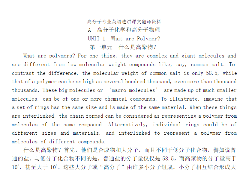 求助曹同玉版《高分子材料工程专业英语》课后习题答案以及Reading Material 部分翻译