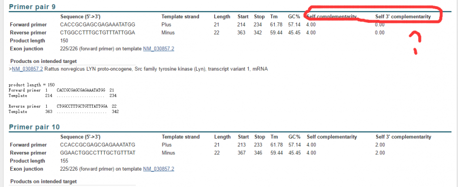 这是在ncbi网站上,找的引物,我不知道图中所圈位置代表啥,有什么意义?