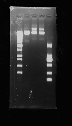 你这是marker加多了还是曝光度没有调好额,条带都看不清楚,你这个载体空载的时候,gfp前面有启动子么?还是是专门检测启动子的载体?可以重新做个酶切降低些质粒量,或者再选择其他的酶试试。另外可以用启动子的特异性引物或者通用引物,用质粒做模板做个PCR验证看看。 发自小木虫Android客户端 |