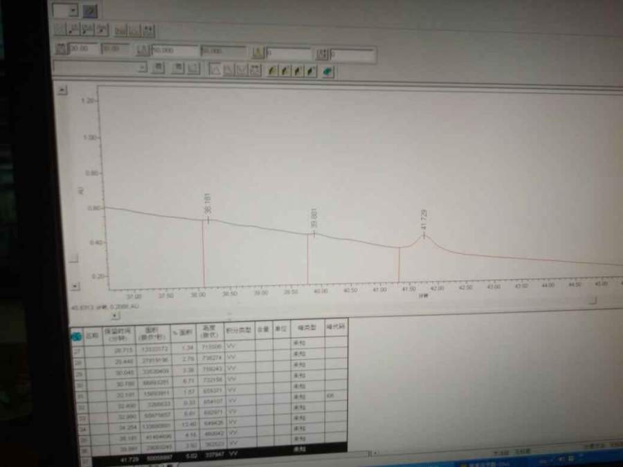 亲们~如图~41.29是我的目标峰。。。该如何得到呢,前面那么多大峰使得基线不平,色谱条件:色谱柱:依利特 Hypersil ODS 2(250 mm×4.6 mm,5 μm);流动相:乙腈-水(72 ∶ 28);流速:1 m L·min- 1;检测波长:280nm;柱温:25 ℃;进样量:10 μL。 蟹蟹亲们~ @lifeliuyan 发自小木虫Android客户端 |