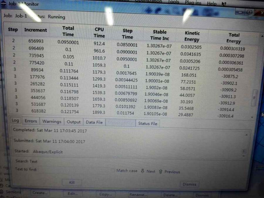 请问你一下,我在做一个动力学接触分析,设置了3个分析步,监视器上的总能量一栏在第一个第二步时是正的,在第三步是变成了负的了,数值相差很大。第三步接触上了,但是第三步走的很慢,想请问大神一下是怎么回事???? 发自小木虫Android客户端 |