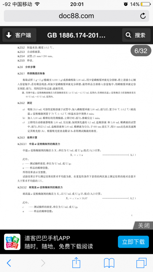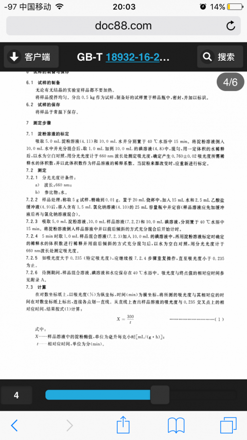 各位虫友,求助下,有以下两个问题,一,a-淀粉酶有相应的国标(工业酶制剂活力测定),是针对中温(60度,ph6.0)、高温淀粉酶(70度,ph6.0)的含量测定,分光光度计测试时通过吸光度表求出对应浓度,后再乘以系数倍数得出样品(中温酶直接 乘以系数倍数,高温酶需再乘一个转换系数)最终酶活。--见图一图二 问题是这样的,如果我改变温度,在38-40度条件下测样品酶活,是否可以继续引用这个吸光度表?如果引用,那需要乘以某个系数么?当然这个系数我无法确定。 问题二,国标有一个测定蜂蜜淀粉酶值,如果用淀粉酶值能否转换为活力值?见图三 主要我现在做的需要以活力值为单位,虽然感觉蜂蜜测定的方法更符合想要的,但是单位不确定能否转换成活力值!请各位虫友赐教! @lovibond 发自小木虫IOS客户端 |