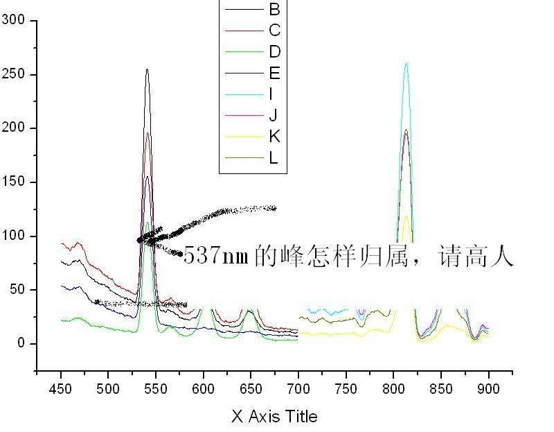 最近做上转换材料,掺杂Sm离子,查阅文献发射峰的归属,约600nm和650nm的峰的归属十分成熟,我利用811nm激发,激发和发射光谱如图,图中无563nm的发射峰,但是536nm的峰是最强的,但不好归属,不知哪位高人可以点拨一二,不胜感激,多谢。 1233321.JPG |