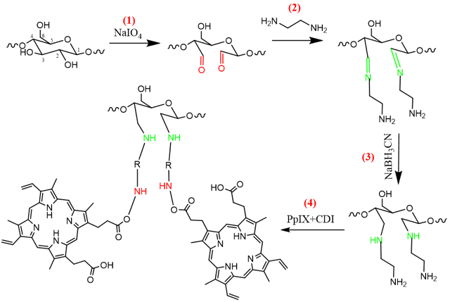 二醛细菌纤维素膜席夫碱反应接枝间隔臂、还原胺化反应