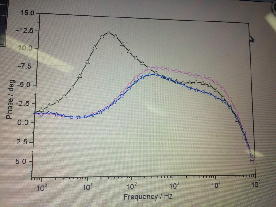 楼主做的黑暗条件下DSSCs的电化学阻抗,就是电化学工作站CHI760E,暗态,-0.65V偏压下,扫描频率是0.1-100000HZ,得到EXCEL数据后,用ORIGIN画的图,得到的Nyquist和Bode分别如下图所示,想知道大圆,小圆分别代表什么意思?怎么由这推算出电子寿命和染料性能???????望广大虫友指教。 电化学阻抗图Nyquist 电化学阻抗图Bode |