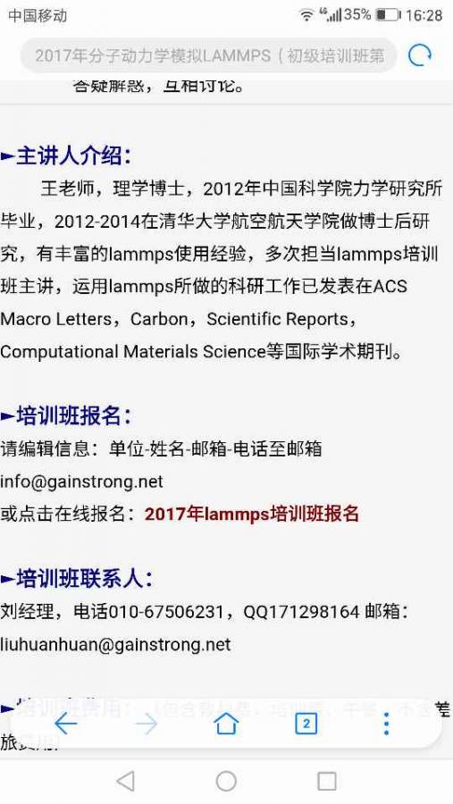 如题,我们课题组打算参加这一培训班。已经了解到主讲人是王超,中科院力学所毕业的。但是,对培训班的具体教学质量并不清楚,所以向广大虫友求助,希望参加过的或是比较清楚的师兄师姐,能谈谈你们的感受或经验,谢谢! 发自小木虫Android客户端 |