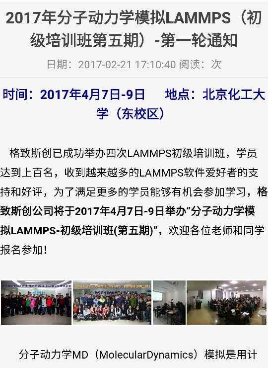 求助,有人知道格致思创公司举办的这个分子动力学培训班质量如何? 已有1人参与