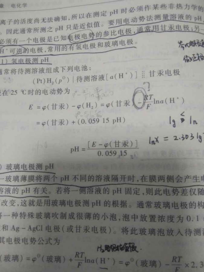 第四版物理化学简明教程262页的用氢电极测定PH,我感觉这里E=φ甘汞-RT/Flna(H+)这里的减号是正号。想不明白了,求助 发自小木虫Android客户端 |