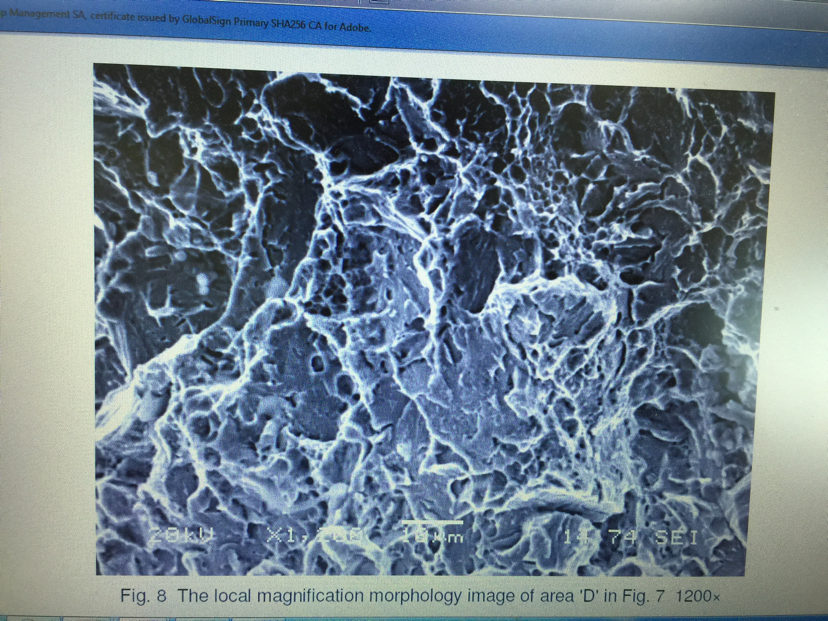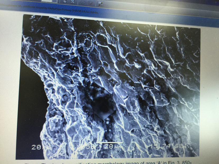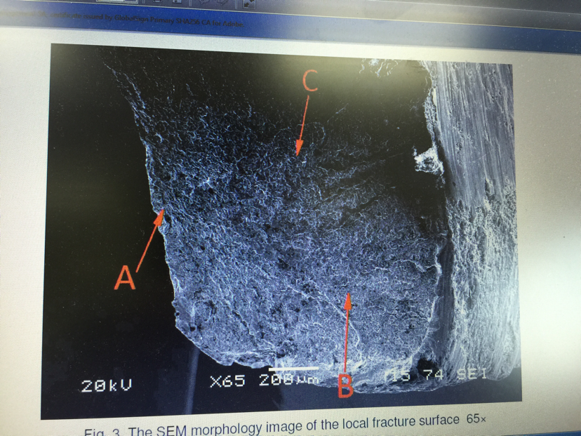 各位大神,帮我看看下面的扫描电镜图片,这个断口属于什么断口?这下面两张断口是不是不一样啊?扫描电镜图片里面有夹杂吗?哪些是夹杂?谢谢谢谢 发自小木虫IOS客户端 |