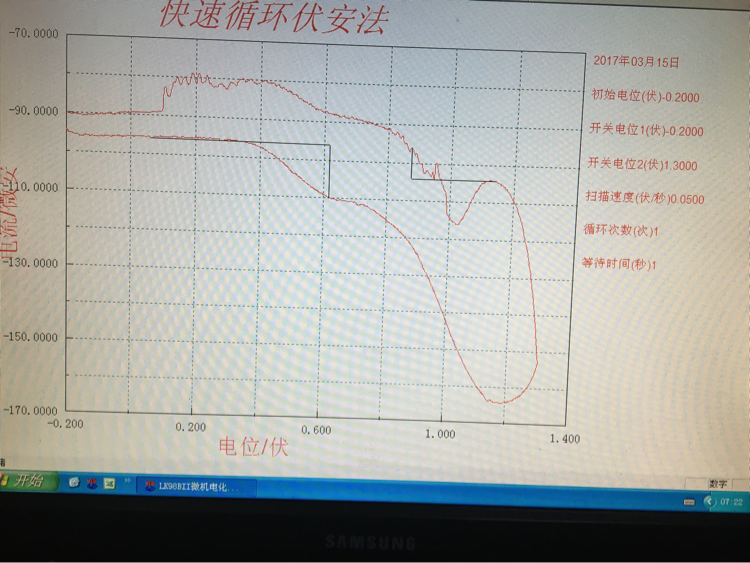 Au平面电极在0.5M硫酸中的循环伏安曲线如下图,是怎么回事