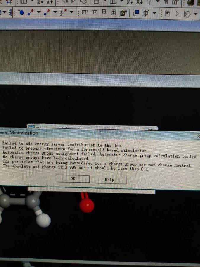 非常感谢您的解答,问题三已经解决。 1. 回答您关于问题三的疑问: 我做这部分MD计算是为了后续利用MS的DPD部分对表面活性剂的性质进行模拟。由于表面活性剂的头基与尾基的性质大有不同,在做DPD模拟之前,通常将会根据片段的性质不同将其粗粒化为不同的粒子。然后根据DPD研究能够比MD更大时间空间尺度上的体系。前人也有很多这方面的研究,如果您对这方面感兴趣可以看一下例如Chen Zhengxia研究的dissipative particle dynamics simulation of the phase behavior and microstructure of CTAB/octane/1-butanol/water microemulsion. 2. 希望您能继续帮助解决一下之前的第二个问题: 对于用MS构建带电荷的离子结构,如下图的苯磺酸钠,它的各个原子的力场和电荷用discover_setup中的哪个力场比较准确?怎样判断自动分配的力场和电荷是否准确?如果不够准确如何进行手动修改? 3. 我在利用discover_minimizer优化图2结构(用COMPASS自动分配过力场及电荷后的结构)时,出现了如图3所示的提示错误,需要如何改正?PS: 用forcite却优化成功了。 PS:问题二我始终没有找到解决方案,希望您能不吝赐教,谢谢! 发自小木虫Android客户端 |