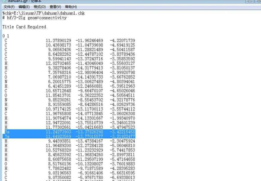 在高斯输入文件里出现了如图片中蓝色部分的问题,请问是怎么回事呢?如何在我的结构中找到出问题的那部分呢?请大神指点一二,在此谢过!
