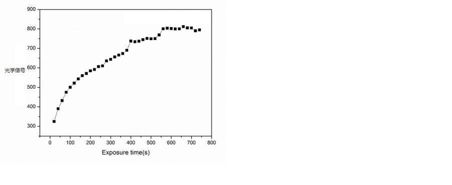 固体在真空中突然通入空气到大气压(时间可以忽略),然后根据发光信号测得不同时间的吸附量(大约在500s时饱和)。
