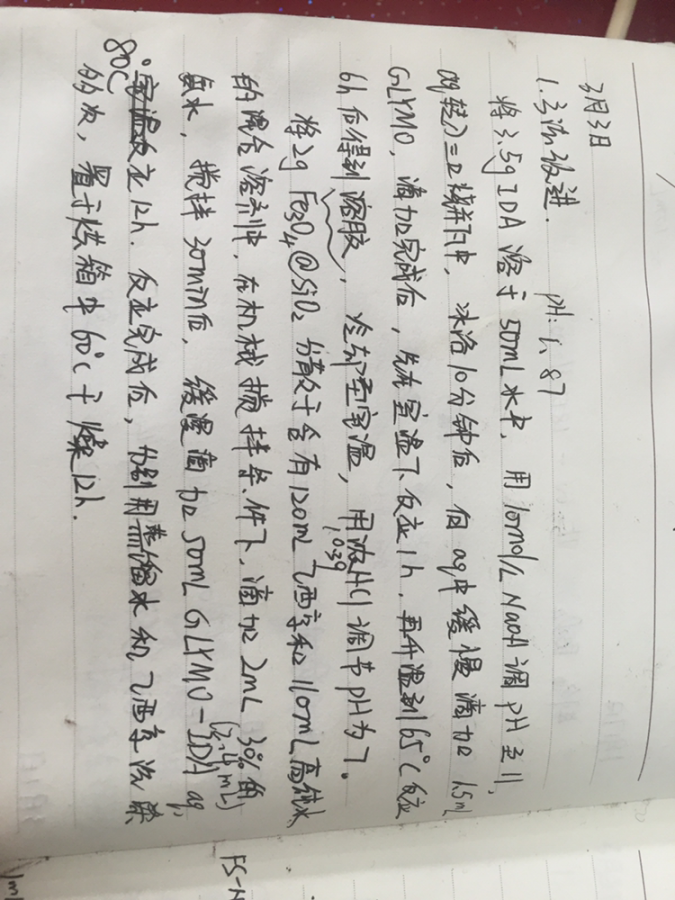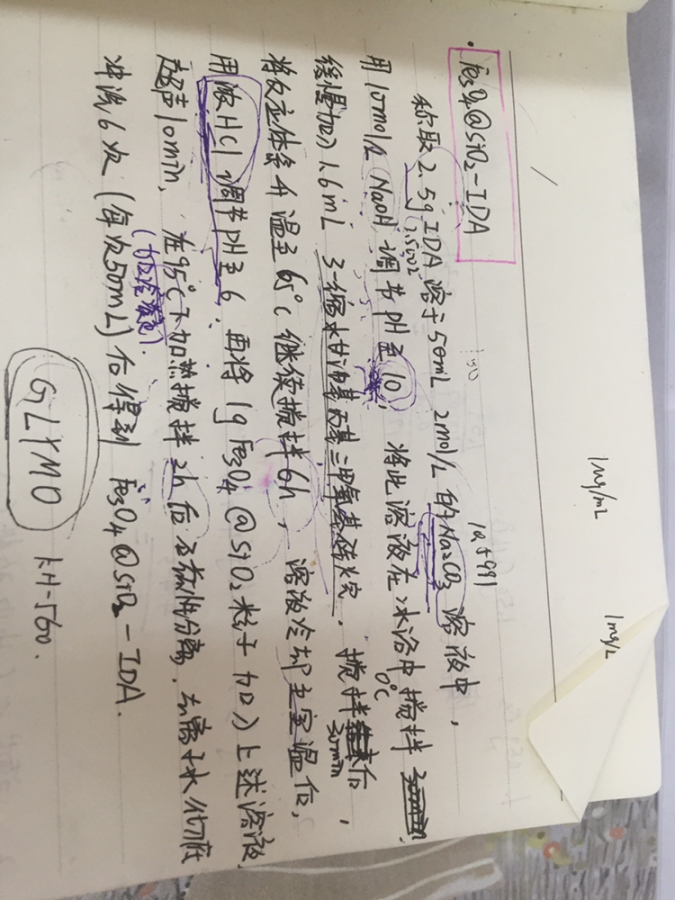 我做的是硅烷法的IDA改性硅包铁,但是一直吸附效果不好,是用亚氨基二乙酸(IDA)与硅烷GLYMO先结合,然后再与硅包铁反应,参考的方法如第一个图片所示,改进后方法为第二个图片所示,都是参考的相关文献,但是我感觉IDA与GLYMO结合的不好,反应6小时后溶液中总会有白色沉淀,我不明白是哪里不对,我老师建议我把与硅包铁结合的温度改为80度,搅拌一晚,以前95度我加的冷凝,80度需要加冷凝吗?有做过的大神吗?求教,这个实验都失败好多次了 @lben85 发自小木虫IOS客户端 |