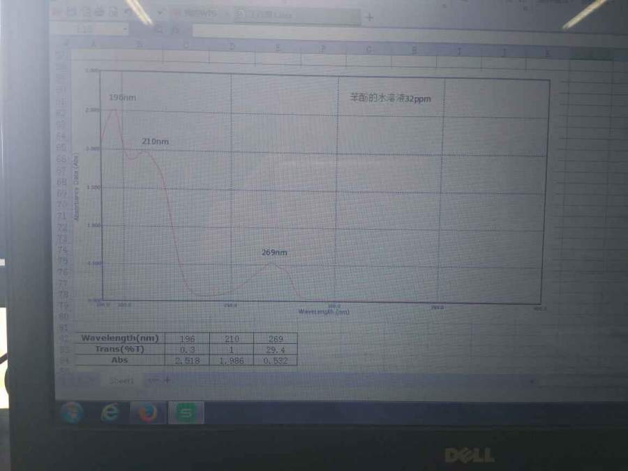 苯酚含量32ppm,直接将苯酚溶于超纯水中定容,稀释。得到的图像如下,老师直接说我错了,可是,我没看明白。求大家解答疑惑! 发自小木虫Android客户端 |