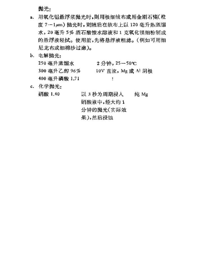| 请问镁合金的抛光方法是什么啊?刚做镁合金方向,不知道怎么抛光,请高手赐教,谢谢! |