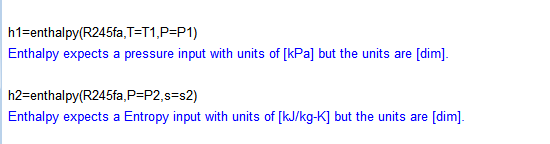 在EES中的Check units中遇到的问题 其中Enthalpy ecpects a pressure input with units of [kPa] but the units are [dim] 遇到这种情况该怎么修改? 6.png |