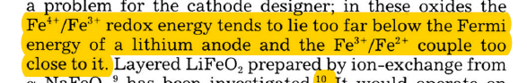 在看Goodenough发的LiFePO4的那篇论文时,他说聚阴离子可以调节Fe3+/Fe2+的电对,又分析了Fe3+/Fe2+的费米能级与锂负极费米能级的关系,我看不懂这个表达,请问电极电压平台与锂负极费米能级有什么关系?能不能解释下论文中的这两段话?谢谢 捕获.PNG 捕获.PNG |