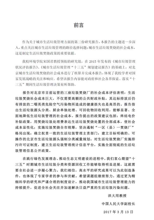 《北京市城市生活垃圾焚烧社会成本评估报告》