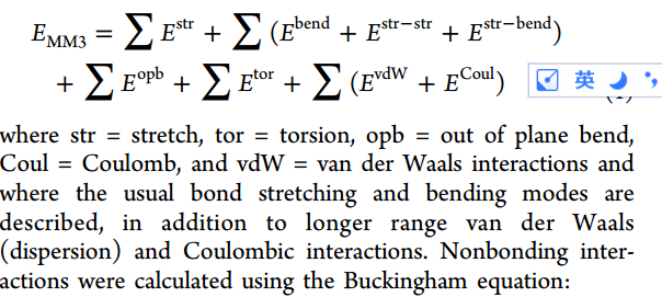 紧急求助,哪位帮我看看如何通过lammps调用MM3力场?最近模拟了一个体系必须用MM3力场,但是MM3的力场形式和lammps现有的力场形式貌似不一样呀,尤其是多了个out of plane bending,这个怎么加上呢? 另外 键角部分还有两个校正项,具体形式见附件啦,先拜谢啦!!! ![]() ![]() 、2017-03-24_160918.png |
