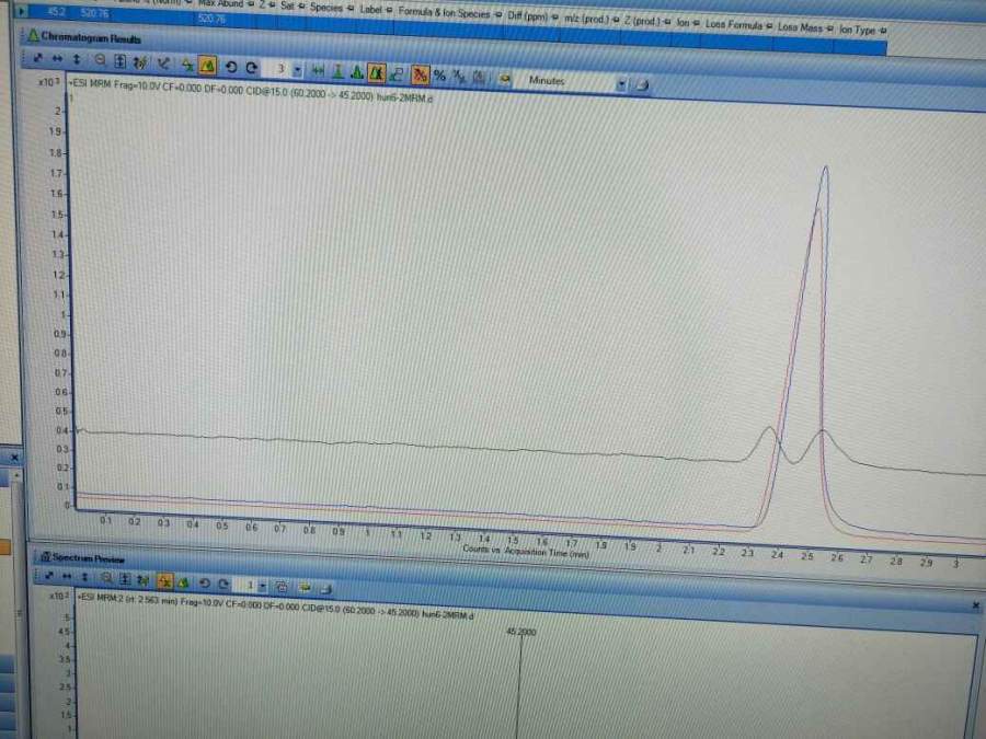 图为安捷伦6460液质跑出来的混标,分别将三种物质的二级质谱图提取出来。可以看出,绿色的这种物质基线很高。但是之前跑高浓度的混标就没有这种问题。这是为什么呢 是不是因为柱子中有残留。 发自小木虫Android客户端 |
