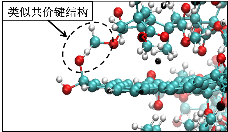 各位大神,我目前正在做边缘羧基化石墨烯/PMMA聚合物复合系统的界面增强机理。通过VMD显示发现,石墨烯的边缘羧基(双键氧原子)会和PMMA分子链(键饱和的氢原子)之间形成“共价键”的结构,而且“共价键”很稳定。我原以为只是VMD显示的虚拟化学键,但是,能量分量输出也显示系统增加了额外的bond energy,请问这种现象是否合理?该如何理解?下图为VMD显示的情况。 图片1.png |