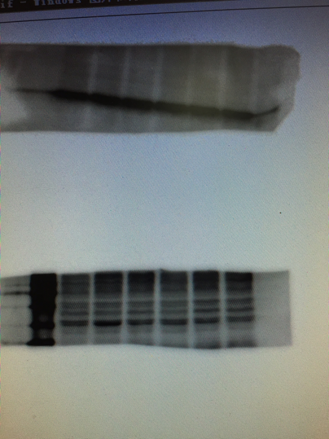 如图,有两个问题:上面那个条带和下面这个条带的背景都很深,我的疑问是是不是洗的太少了(我是5min/次一共15min)下面这个特异性条带很明显,能有什么方法可以解决,下图中我的目的条带是最下面一条,隐约能看到两条重合在一起,是不是降解了,放-20度也快四个月了,求解答. 发自小木虫IOS客户端 |