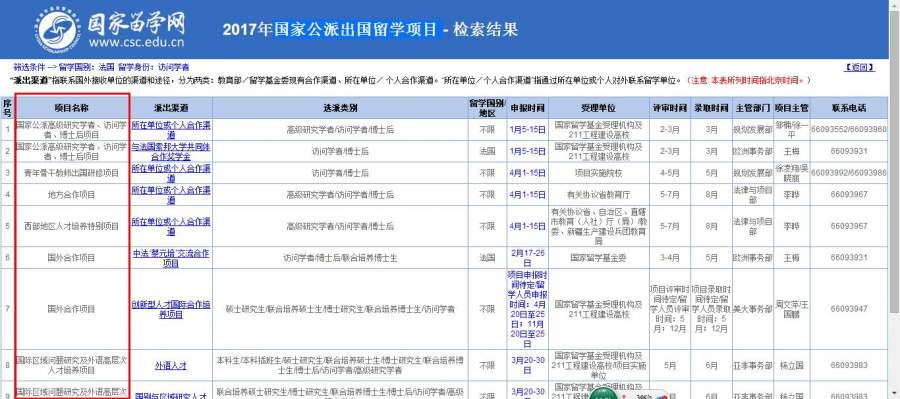 如题,在国家公派留学网的项目检索里面http://www.csc.edu.cn/require/可以看到不少的项目,这些项目除了申请的时间、申请公派的留学种类、公派国家不太一样外,还有什么区别??有些时间不一致的,是不是可以在申请一项失败后再申请另外一项??? 比如,我选了法国的访问学者,出现下列这些项目 360截图20170325141622971.jpg |