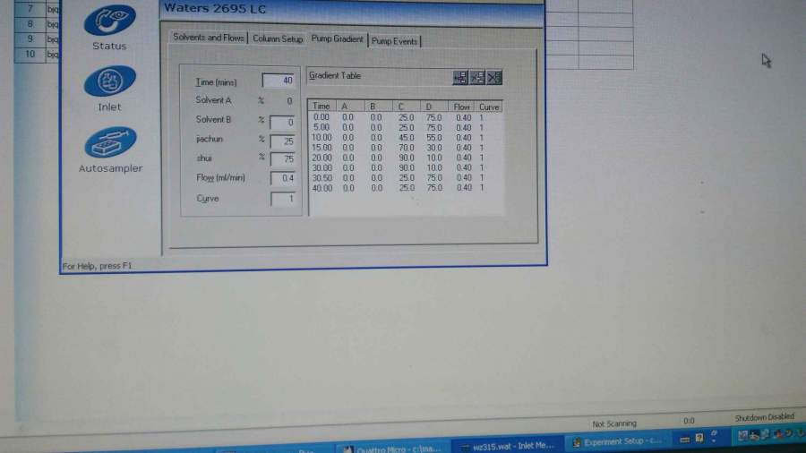 进的是百菌清标准品,1mg/L,下面的图是我得谱图还有液相条件?实在不知道为什么出的这么差,求大神指点 发自小木虫Android客户端 |