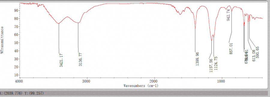 请问3421,3136cm-1是水峰嘛,但是样品已经除去水。不清楚1400和857cm-1是什么结构的峰,样品是纯无水硫酸钙,谢谢大家,毕业论文需要。![]() 4`A39}A]UKTLDBHFF~R(2_6.png |