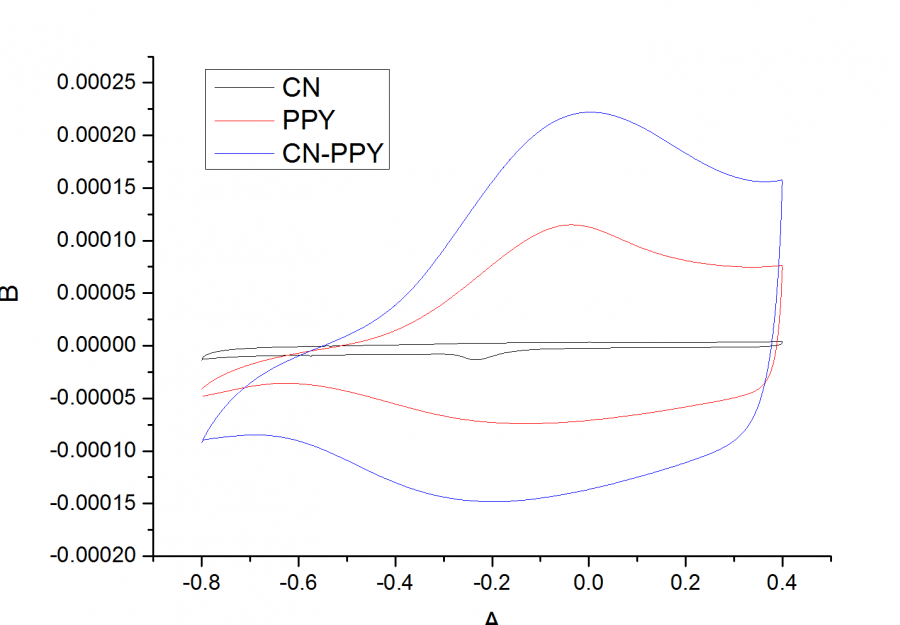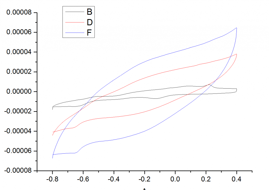 大家好,本人初次接触电化学,很多东西还处于”自认为“阶段,今天在测CV曲线的时候有一些问题不明白,请大牛们给回答一下! 第一个图是碳纳米管电聚合吡咯后测的CV曲线,电解质是氯化钠;第二个图电解质是NaReO4;为什么第二个图没有氧化还原峰出现,大家推测是什么原因造成的呢? J4`ED6HT[WYKAM4ITXVI[{L.png R`%9`@P~95PY6_VO`{F1S8K.png@Gamry-电化学@a88592718@langzhizhou@louderbe@VIMPILE |