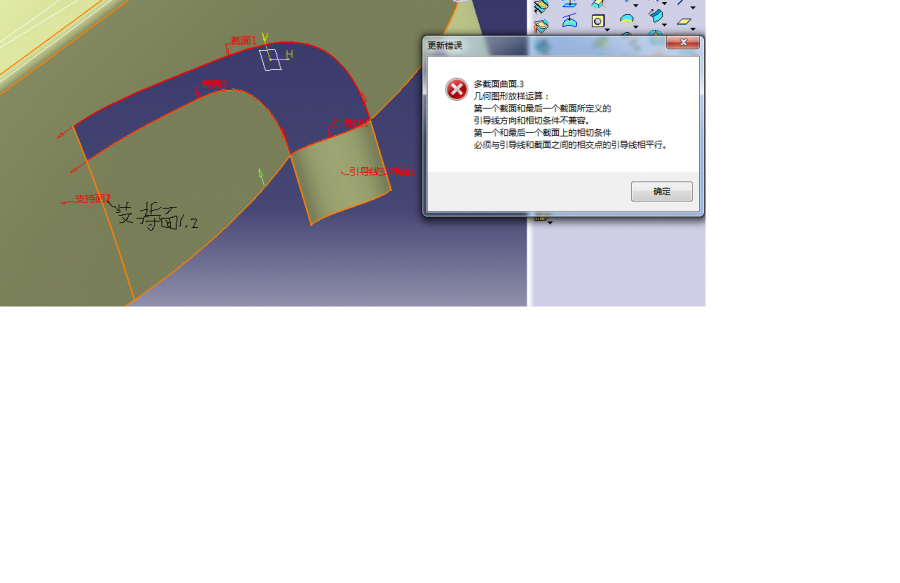 用CATIA在创成式中画图时,用到多截面曲面命令,出现报错。请教大神是哪里画的不对,报错什么意思~ 无标题.png@ctgu_zheng@kerven |