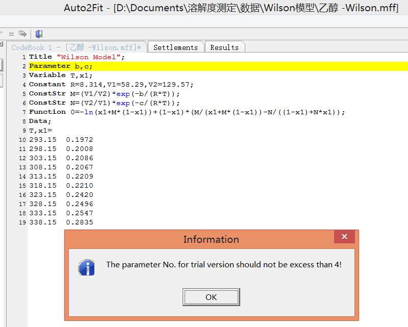 使用专业版1.5 1stopt软件拟合Wilson 方程,为什么重复拟4个参数得到不同结果。 已有1人参与